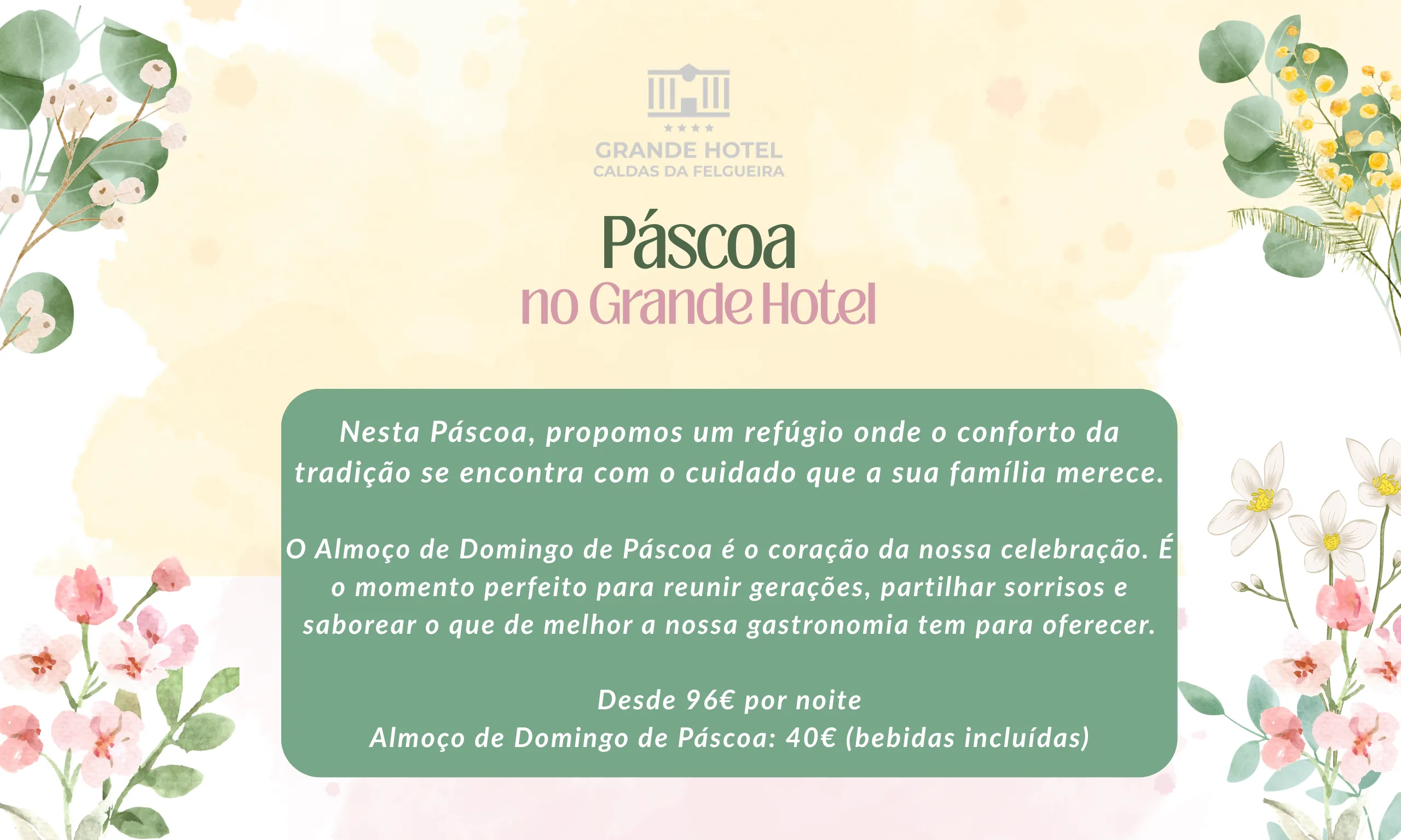 Com quartos elegantes, piscina exterior sazonal, gastronomia tradicional e uma atmosfera serena, o Grande Hotel das Caldas da Felgueira é o destino ideal para turismo de bem-estar, escapadas românticas ou retiros tranquilos em plena natureza.